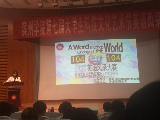 为提高同学们的英语学习水平,增强学生学习英语的兴趣与信心,促进校园文化多元化的发展,滨州学院于5月5日在500人礼堂举办大学生英语风采大赛活动。杜姝延代表我院参加此次比赛。