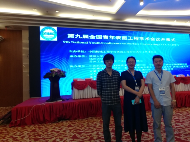 我院谢彦和陈宇二位老师于2017年5月24日-26日参加了在苏州市举办的第九届全国青年表面工程学术会议。本次大会的主题是“面向中国制造2025-多学科交叉表面工程技术”。会议设大会主旨报告、特邀报告、分会报告、展览交流等多种形式。会议目的在于为全国青年表面工程工作者提供自由和活跃的学术交流平台,就实际工程应用中所暴露/驱动的表面工程技术及其交叉领域内的瓶颈/热点问题,特别是装备制造业性能提升、产业改造升级、节能降耗减排、环境友好型、能源节约型等高技术应用等问题展开讨论。