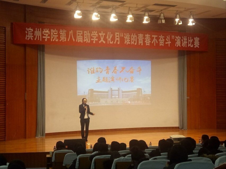 11月30日19:00,滨州学院在500人报告厅组织“助学月,谁的青春不奋斗”演讲比赛。我院代表赵慧珍参加此次比赛。