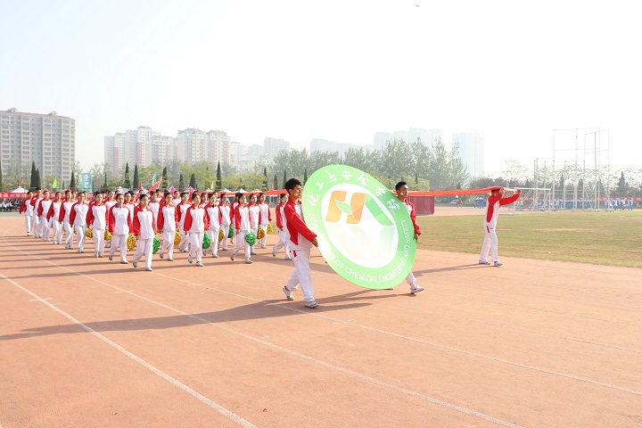 上午7:00,伴随着铿锵有力的锣鼓声,我院表演方阵以其特有的活力与魅力来到了主席台前。方队首先采用“NO.1”队列,“NO.1”象征化院在本次运动会中勇争第一的态度。随后,方队排列了“碳氢→环己烷”形式,用元素转换的概念展现了我院的学科特点。最后队列变换成“我院院徽”,淋漓尽致的诠释了化院学子们的风采。随后,由我院参加的广播体操、排舞及团体操展现在我们眼前,动感的音乐配合灵活的舞步,赢得阵阵掌声。