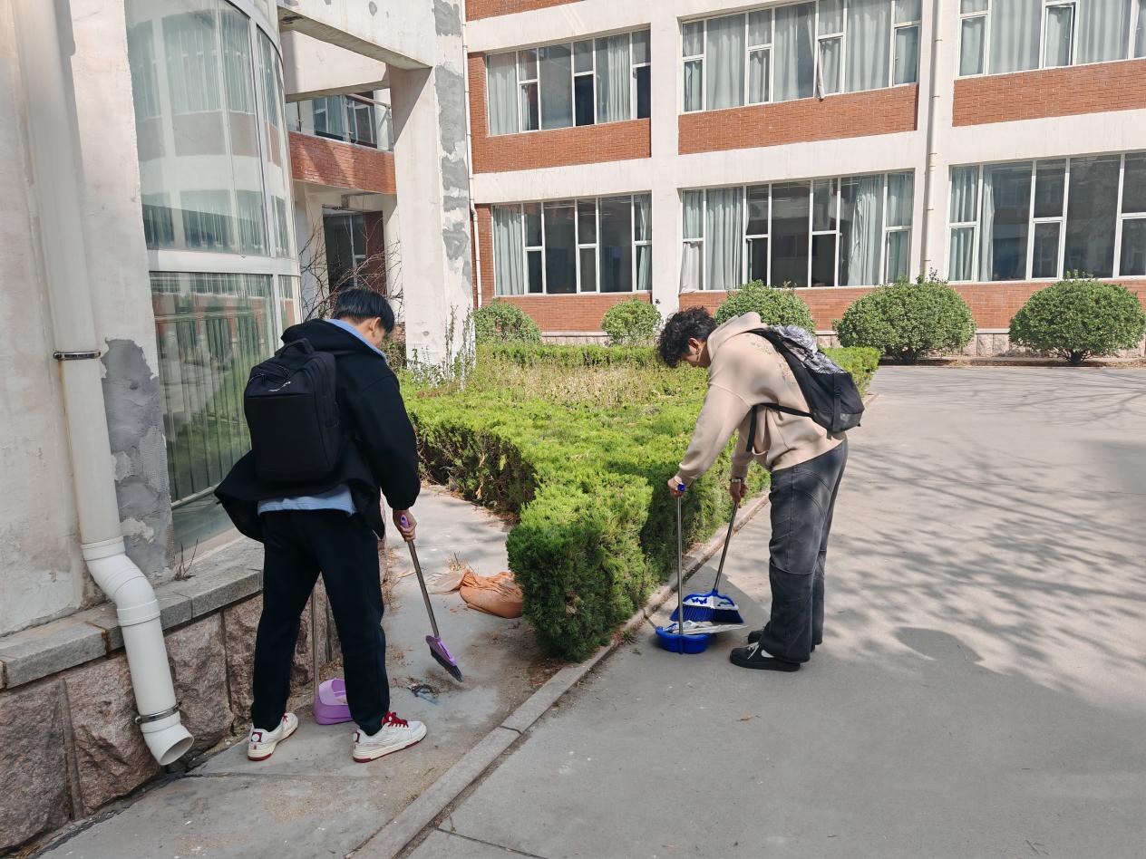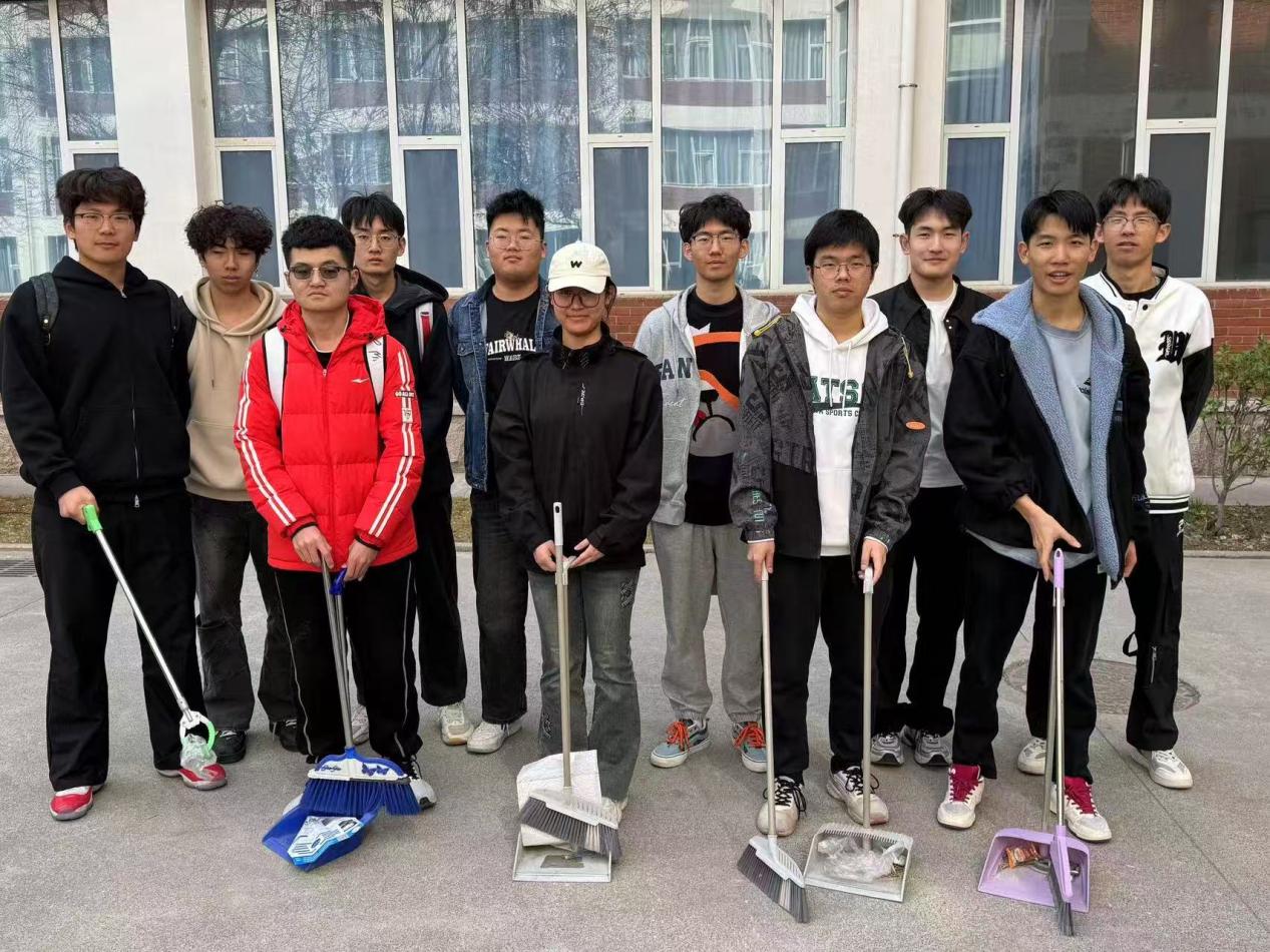 校园清洁行动:高分子材料与工程专业2024级本科1班团支部组织团员对校园公共区域进行清洁,清理垃圾、整理共享单车,为营造整洁校园环境贡献力量。