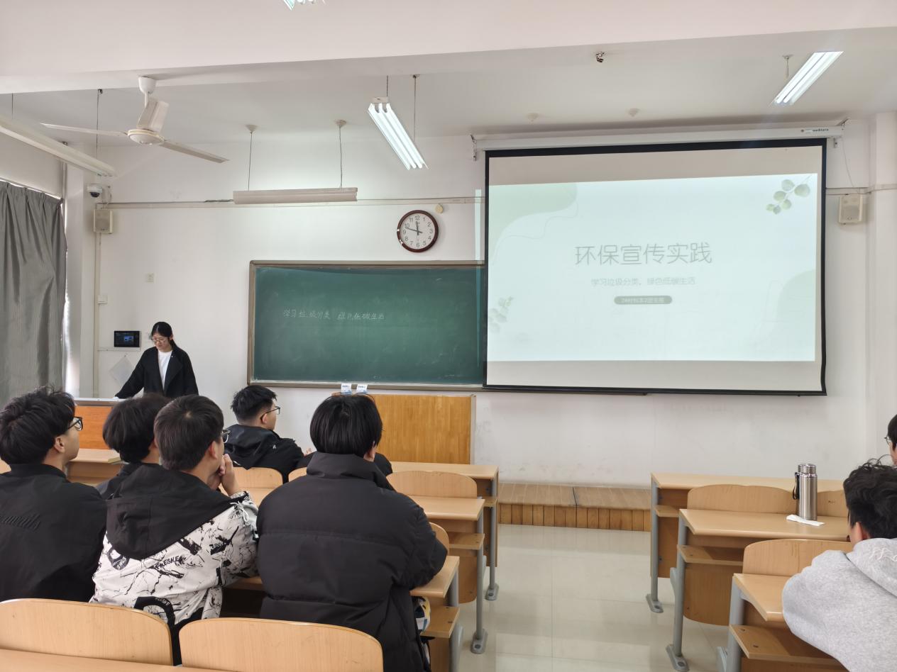 环保宣传实践:高分子材料与工程专业2024级本科2班团支部开展环保宣传活动,向同学们普及垃圾分类知识,倡导绿色低碳生活方式。