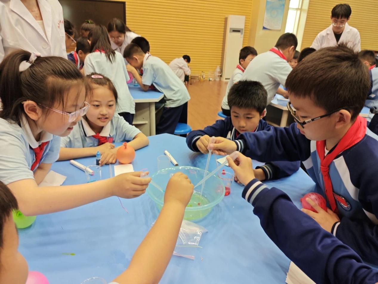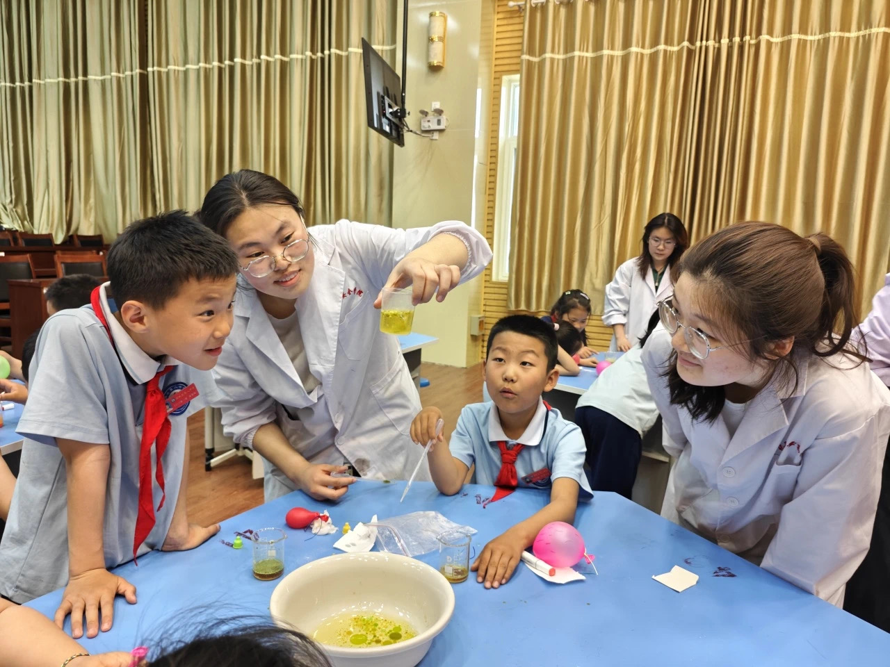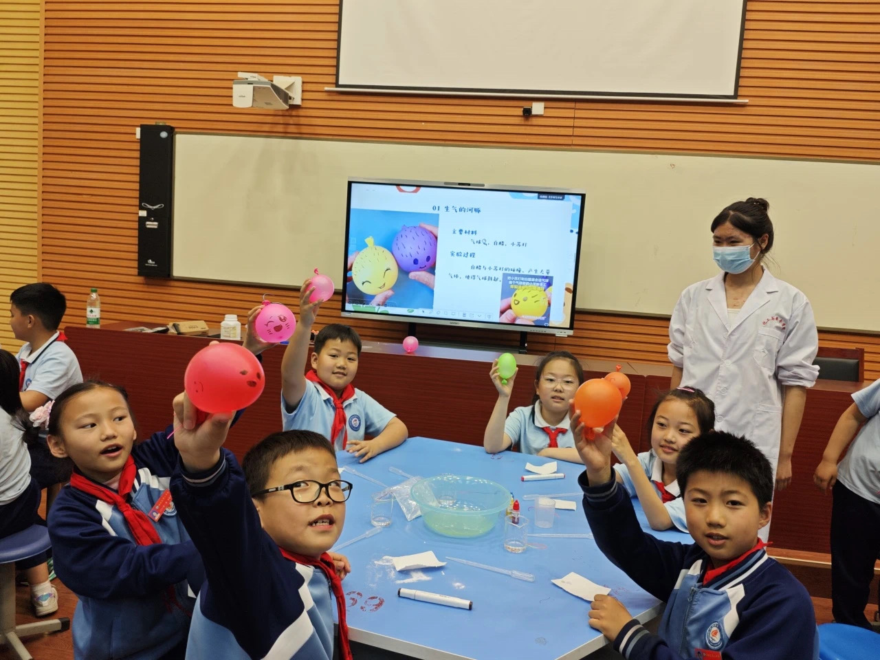 在整个活动过程中,同学们积极参与,踊跃提问,为什么二氧化碳会让气球膨胀? 表面张力是什么?复分解反应还有其他例子吗? 志愿者们都耐心地一一解答,用通俗易懂的语言让同学们理解复杂的化学原理。同学们在动手操作和观察现象的过程中,不仅学到了丰富的化学知识,还培养了观察力和动手能力。