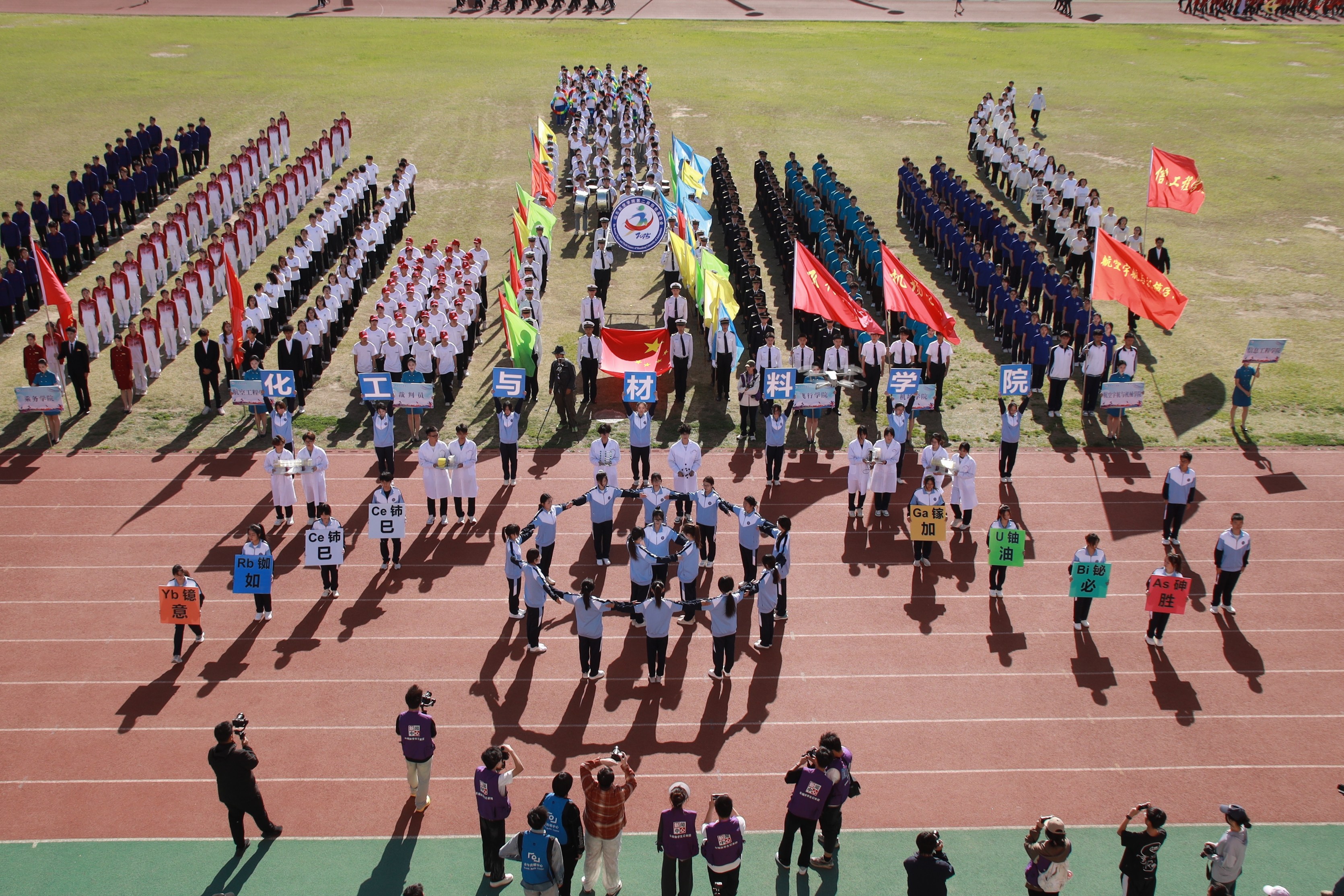 开幕式上,学院方阵一登场便引爆全场!“看!那是我们的‘分子结构’方阵!”随着队伍变换,同学们手持仪器、分子模型等道具,以灵动队形演绎化学与材料的无限可能。一组组创意动作宛如动态的学科名片,让观众直呼:“不愧是化院人,连开幕式都带着实验室的浪漫!”