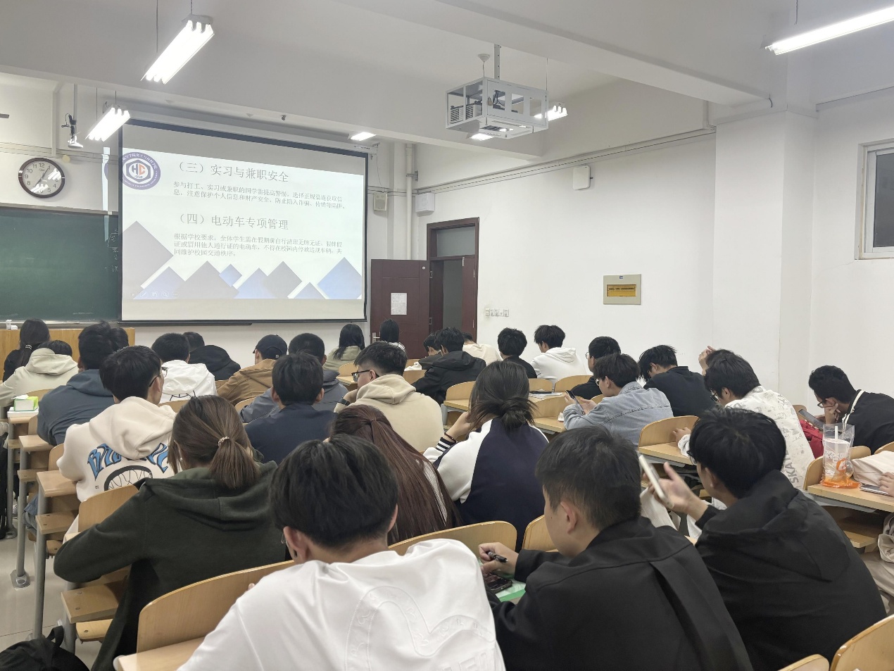 为了让每位同学安心享受假期,我院于4月27日召开安全教育主题班会,从出行到留校,从防诈到应急,360°织密安全防护网。