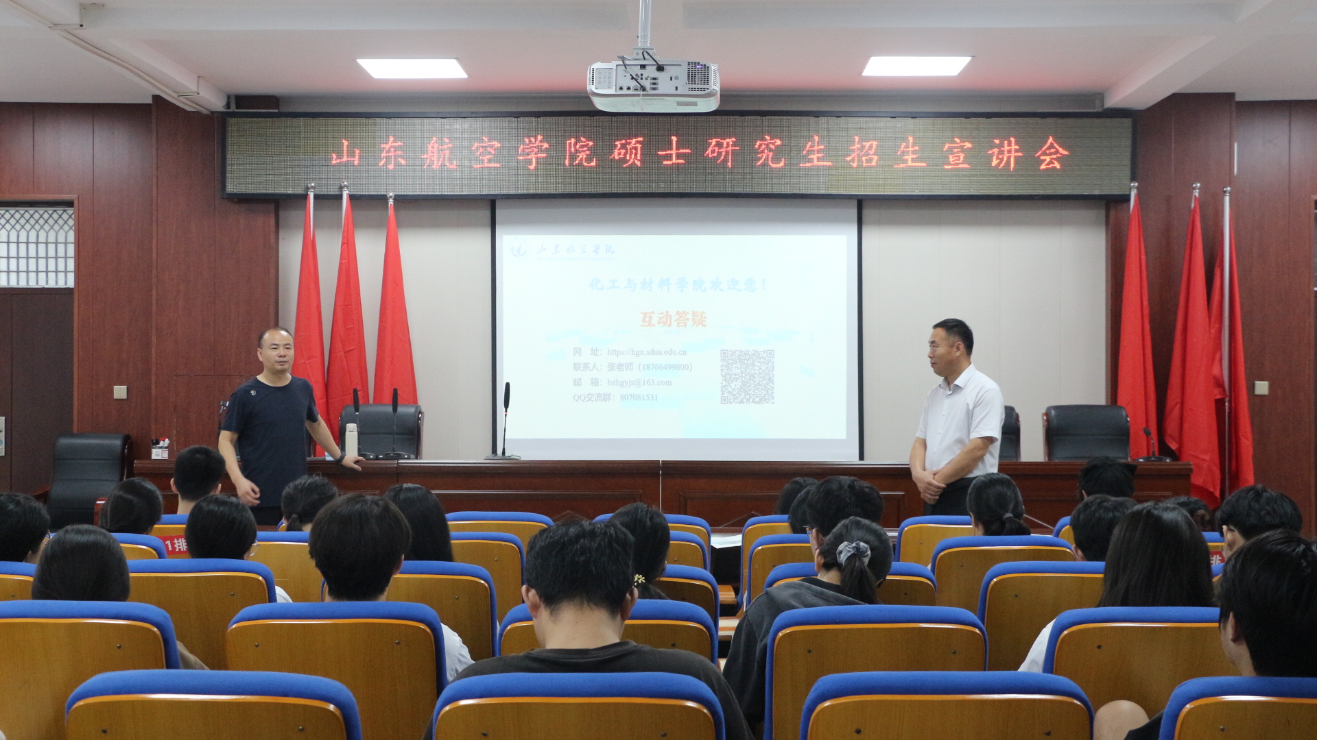 在安阳工学院化学与环境工程学院、周口师范学院化学化工学院、黄河科技学院医学部药学科教中心,两位老师向学生全面介绍了学院历史沿革、专业建设、学科建设、师资队伍、科研平台、人才培养体系与特色、就业前景与趋势以及研究生招考选拔机制等情况,并发放了相关宣传资料。